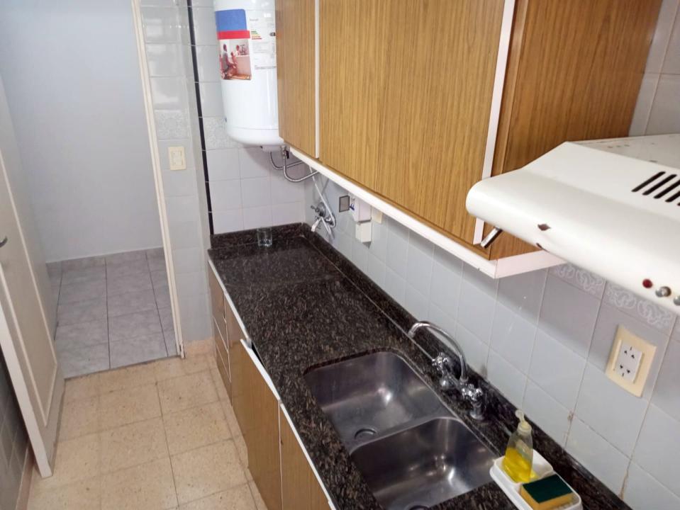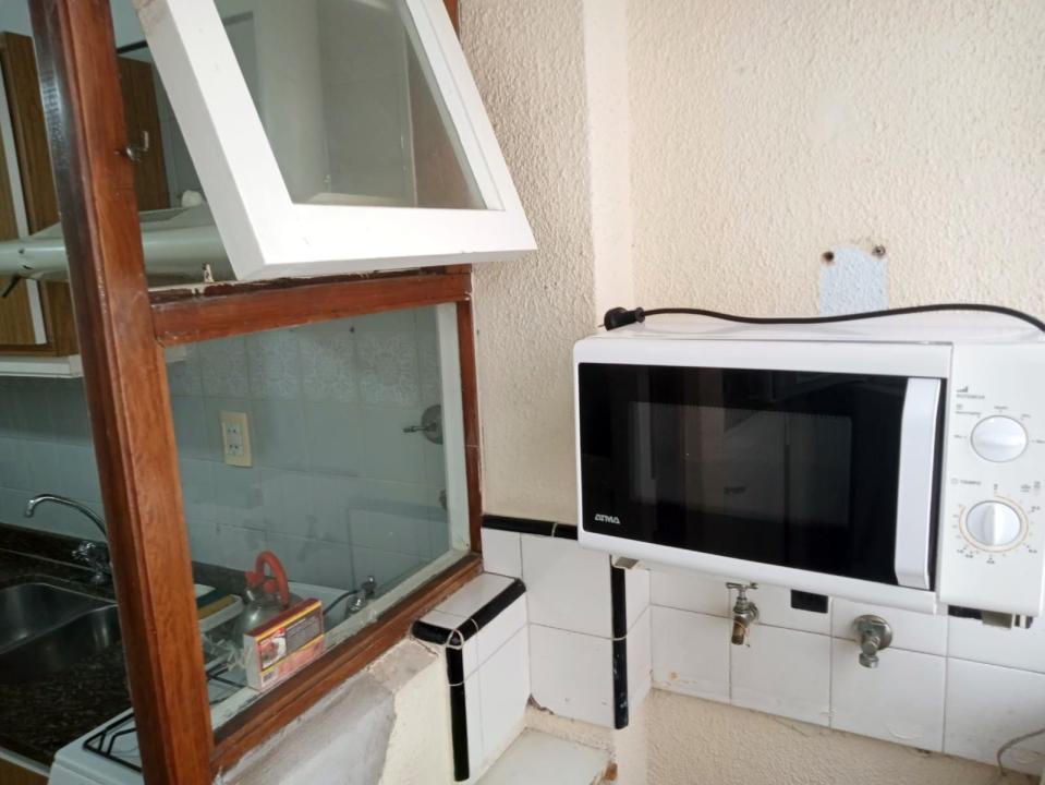 Cocina separada, con ventilación natural, cómoda con lavadero. Equipada con heladera con freezer, microondas, cocina a gas y termontaque eléctrico. Dormitorio al contrafrente con pisos de parquet y placard empotrado.