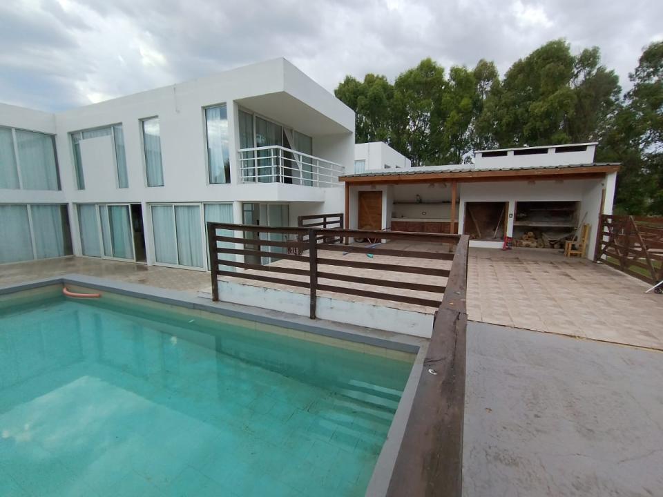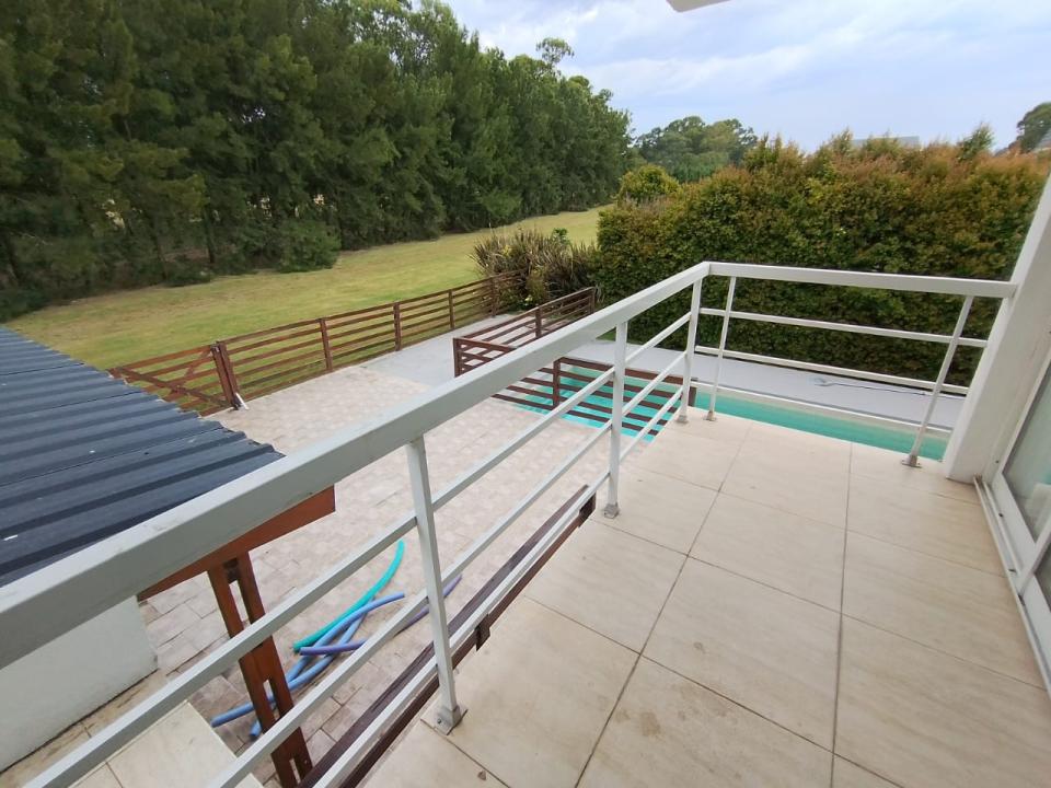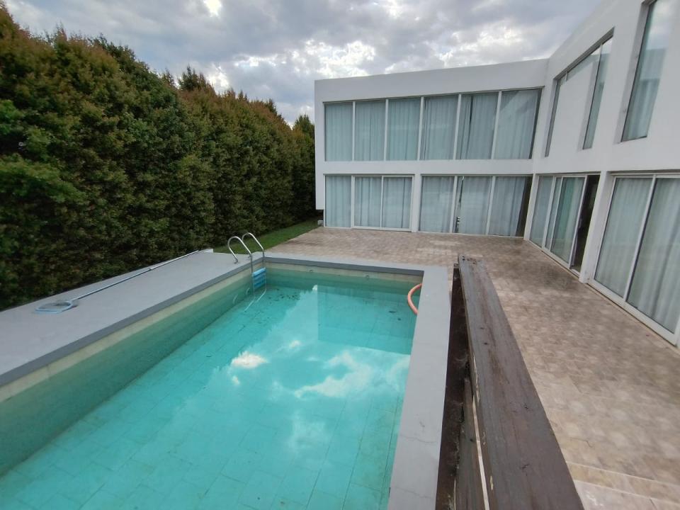 En su parte exterior nos encontramos con una hermosa piscina, rodeada de un bello parque y entorno natural, conectando con la misma, una segunda y amplia parrilla semicubierta. Garaje para 3 autos y extensa trotadora.